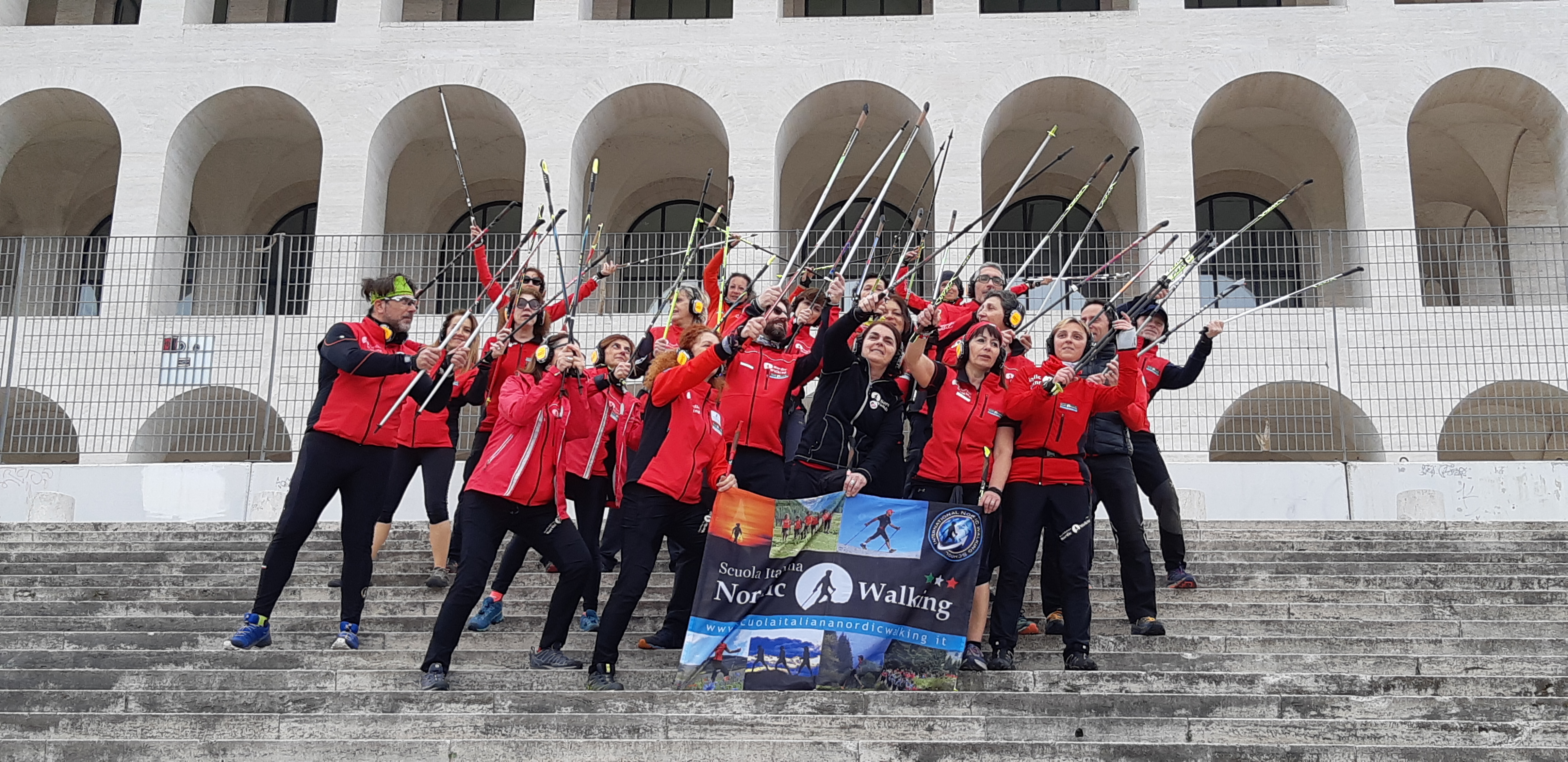 Lo scorso week end (9 e 10 marzo) Roma ha visto colorare il quartiere razionalista dell’Eur di giubbe rosse:ben 20 tra istruttori e maestri, capeggiati da Flavia Brazzoduro, (la nostra istruttrice del Nordic Project), hanno attraversato i giardini e i viali della città a suon di musica e hanno dato il via ad un nuovo corso di specializzazione fortemente voluto dal Direttivo e dalla Commissione Tecnica per dare sempre più stimoli e chiavi di lettura alla squadra della Scuola Italiana Nordic Walking.