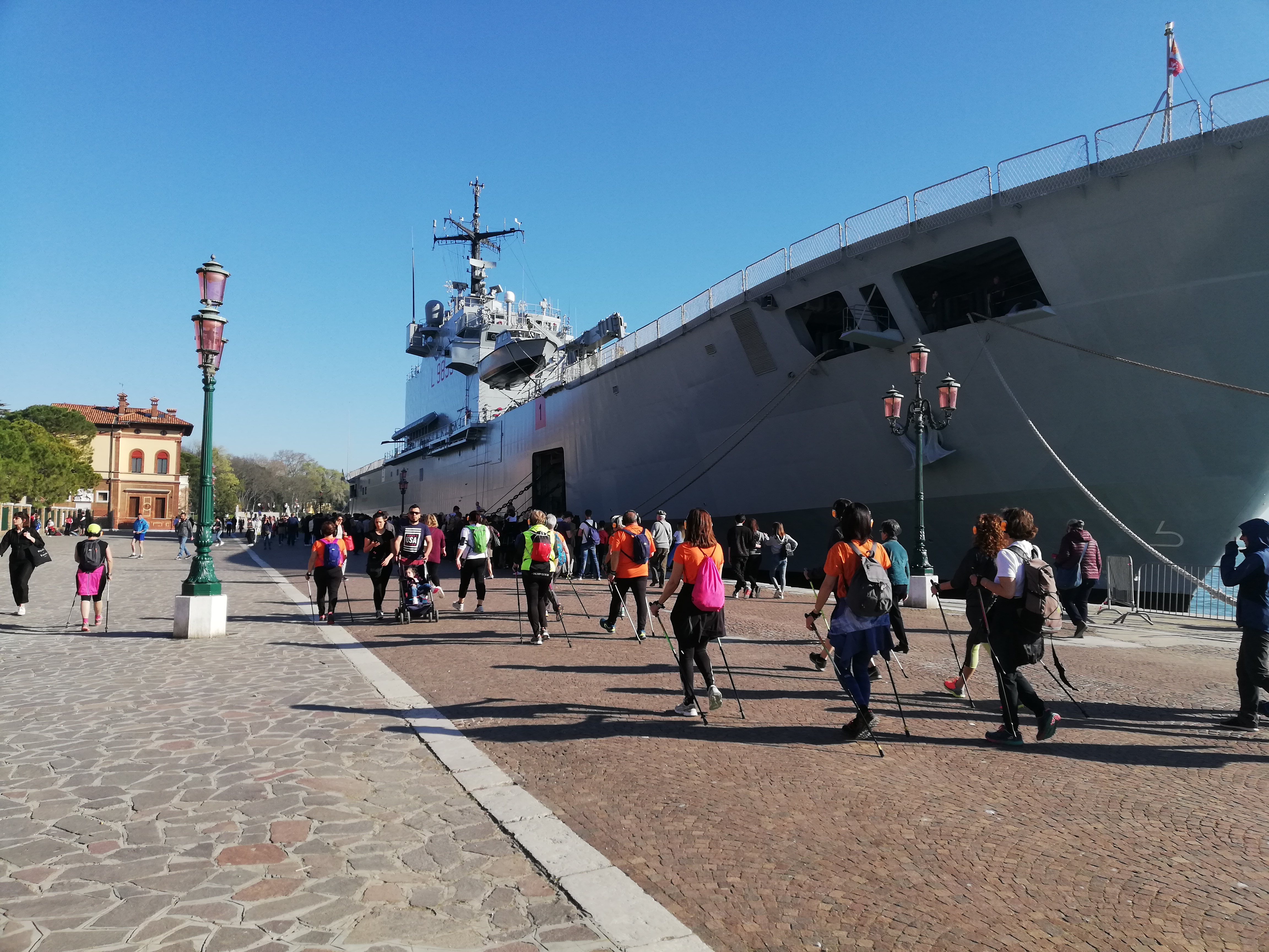 Partiamo dalla riva degli Schiavoni e vediamo la nave militare S.Marco per la festa dei 100 anni dei Lagunari.